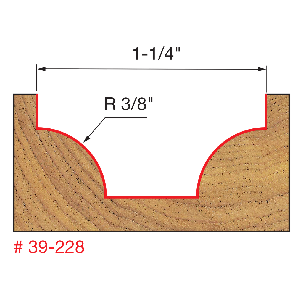 Freud 3/8″ Radius Ovolo Bit with 1/2″ shank, 2-1/16″ overall length #39-228