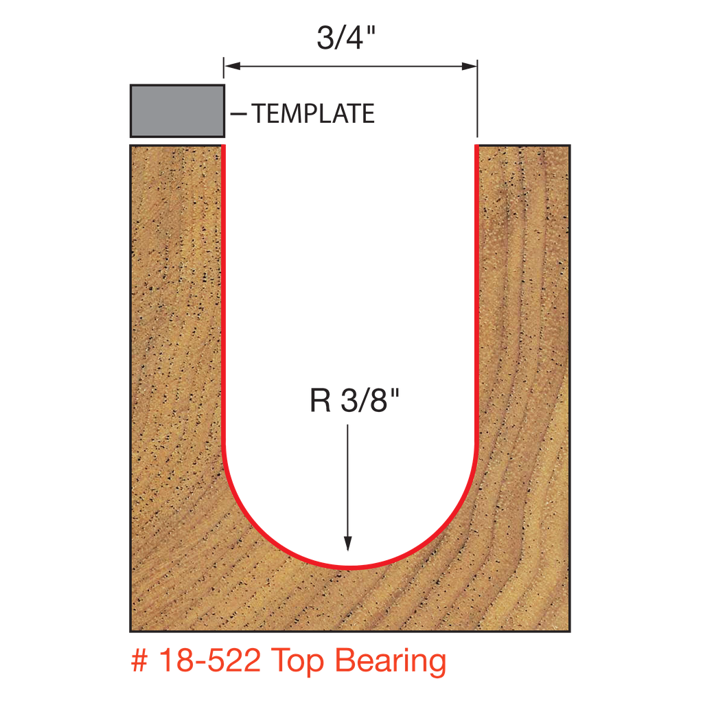 Freud 3/8″ Radius Round Nose Bit with 1/2″ shank, 2-27/32″ overall length #18-522