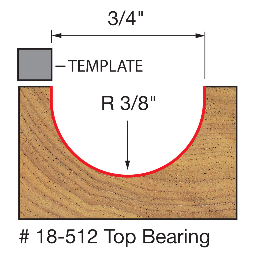 Freud 3/8″ Radius Round Nose Bit with 1/4″ shank, 2-11/32″ overall length #18-512