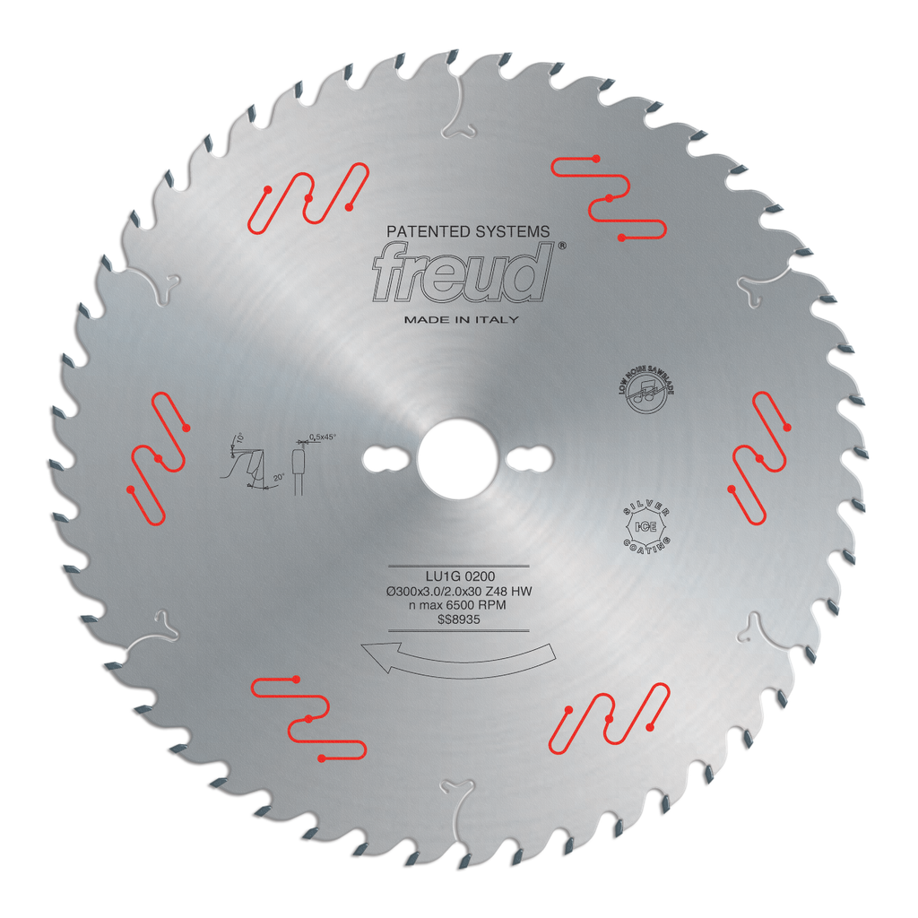 Engineered for precision and versatility, the carbide-tipped blade excels in both ripping and crosscutting tasks, making it an essential tool for woodworking enthusiasts and professionals alike. Featuring a unique rounded tooth design on the side, it provides a positive cutting angle that enhances performance across various types of wood, including both hardwoods and softwoods. The Silver I.C.E. coating plays a crucial role in maintaining the blade’s longevity by preventing build-up and ensuring it operates cooler and cleaner during use. With an anti-vibration design that promotes smooth cutting, this 300mm blade is equipped with 48 sharp teeth specifically designed for efficient and silent operation, catering to the demanding needs of sawing solid wood. Whether you’re tackling a major project or crafting intricate details, this blade is built to deliver reliable results time after time.