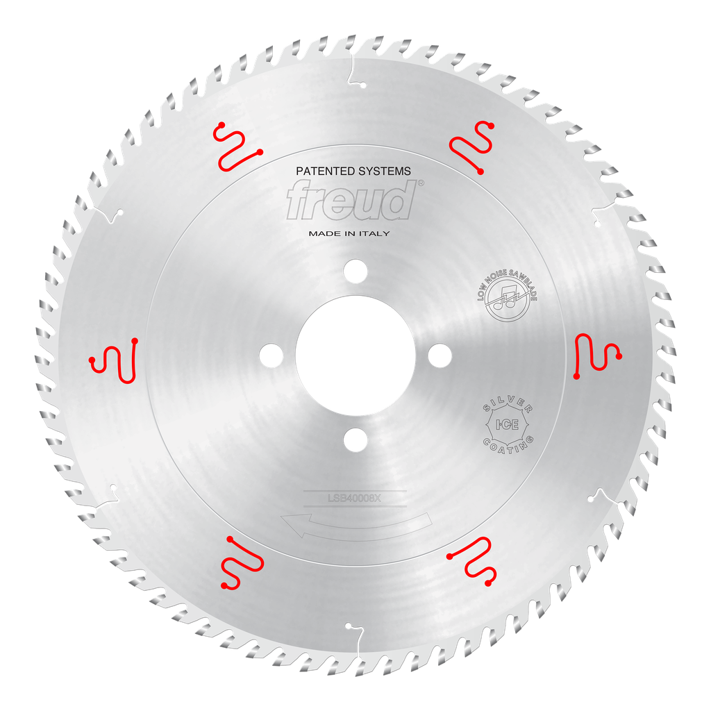 The 400mm Panel Sizing Blade from Freud Tools is expertly crafted for horizontal beam saws, making it an essential tool for cutting various wood panels and materials such as fiber board, melamine, and plywood. With 72 precision teeth designed in a triple chip grind and a positive cutting angle, this blade ensures clean cuts while minimizing vibration for enhanced stability during operation. The proprietary Silver I.C.E. Coating significantly reduces debris buildup, allowing the blade to perform cooler and cleaner, which extends its overall lifespan. Whether working with chipboard, MDF, or laminate, this premium blade is engineered to deliver accurate sizing in industrial applications, empowering users to tackle single or multiple panels with ease.