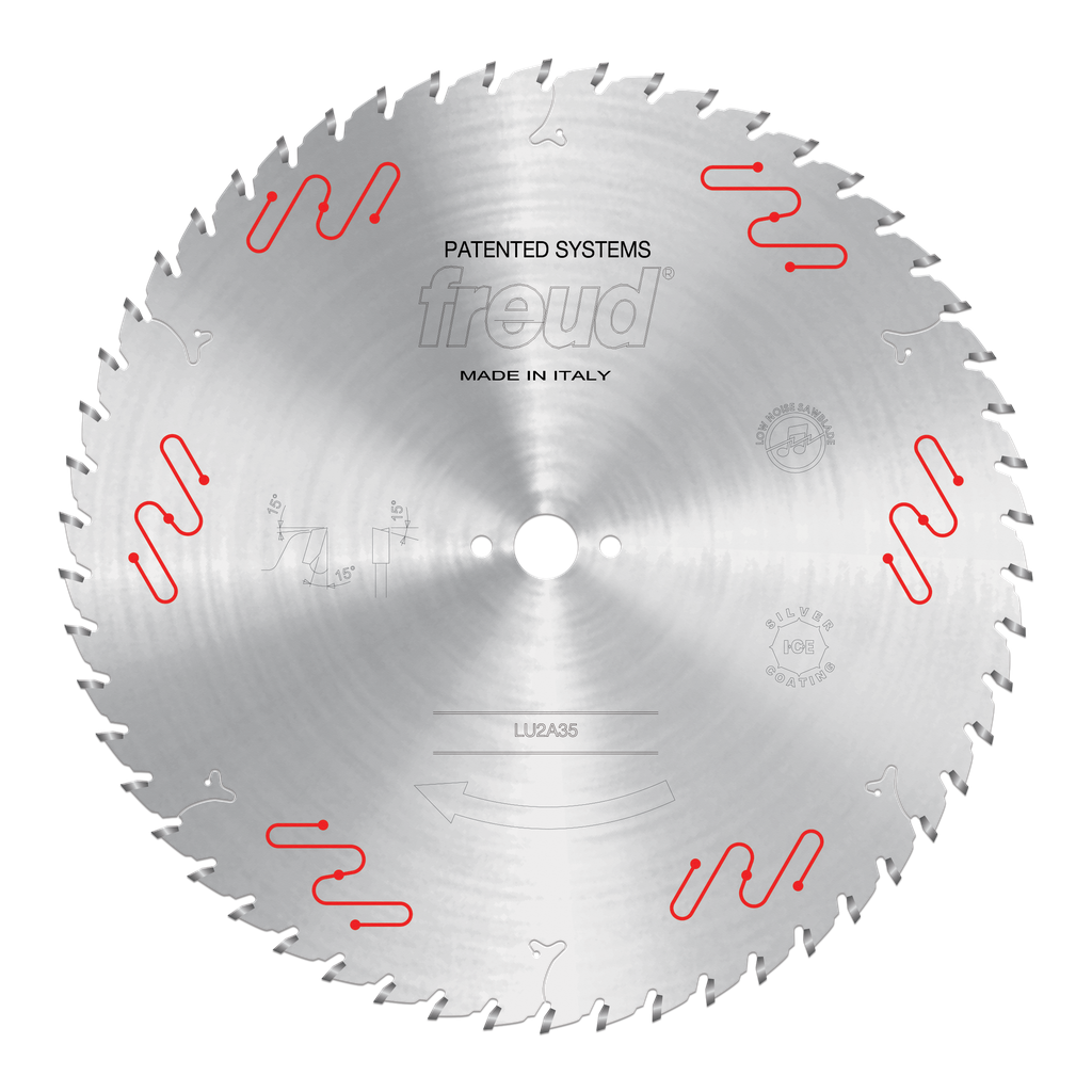 Elevate your cutting experience with the 450mm Carbide Tipped Blade designed by Freud Tools, ideal for both ripping and crosscutting a wide variety of materials. Engineered for efficiency, this silent sawblade features a unique anti-vibration design that minimizes noise and reduces wear, allowing for smoother operation. The blade boasts 54 ATB teeth with a 15° hook angle, making it particularly effective for slicing through hardwoods, softwoods, MDF, particle board, and laminated surfaces, resulting in clean, precise cuts on veneered plywood and double-sided veneers. Enhanced with a Silver I.C.E. Coating, this blade resists buildup on its surface, keeping it cooler and cleaner, thereby extending its lifespan and maintaining superior performance throughout your projects.