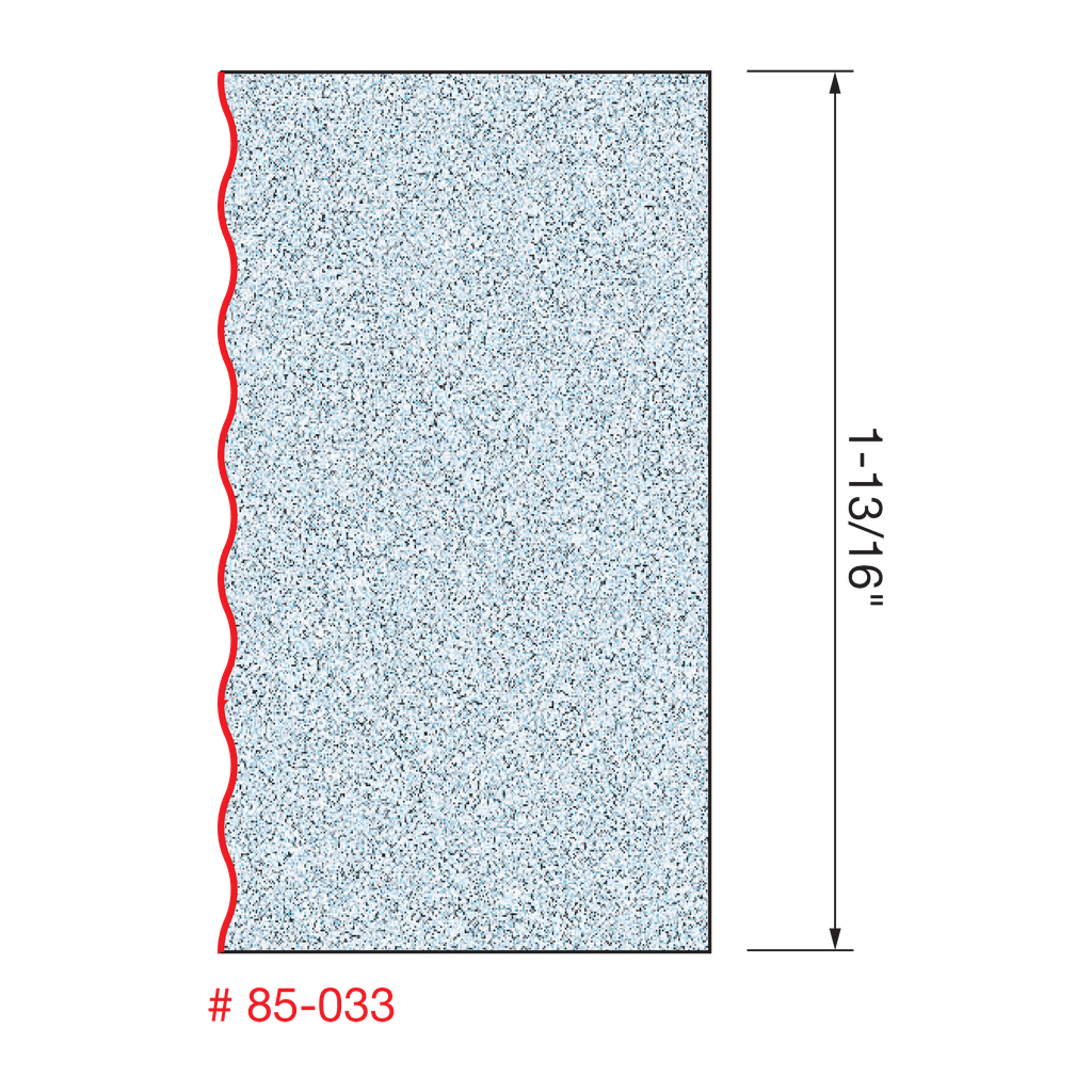 Wavy Joint bits increase the surface area of glue joints to produce the strongest possible joints between sections of solid surface material. Waves formed in material accommodate more surface glue, creating a solid joint. Use in hand-held routers equipped with edge guides, or in table-mounted routers to rout any solid surface material.