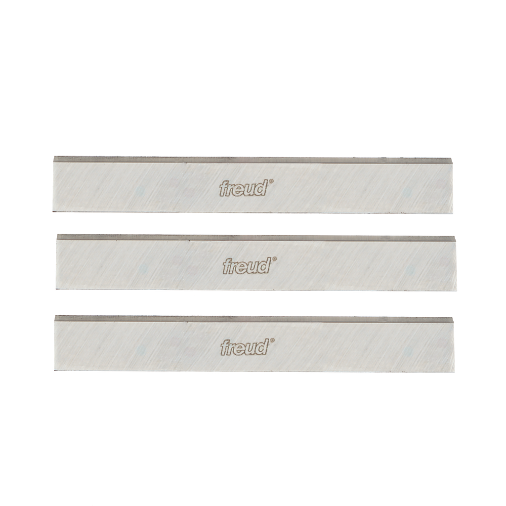 Experience unparalleled cutting performance with this set of high speed steel industrial planer and jointer knives. Precision machined for optimal results, these knives are pre-ground to a razor sharp edge, ensuring the smoothest cuts on both hardwoods and softwoods alike. Crafted from premium high speed steel, they not only provide the keenest edge but also guarantee a longer lifespan, making them an indispensable tool for any woodworking enthusiast or professional. Covered by Freud’s limited lifetime warranty, these replacement knives offer reliable and consistent performance for your planer or jointer.