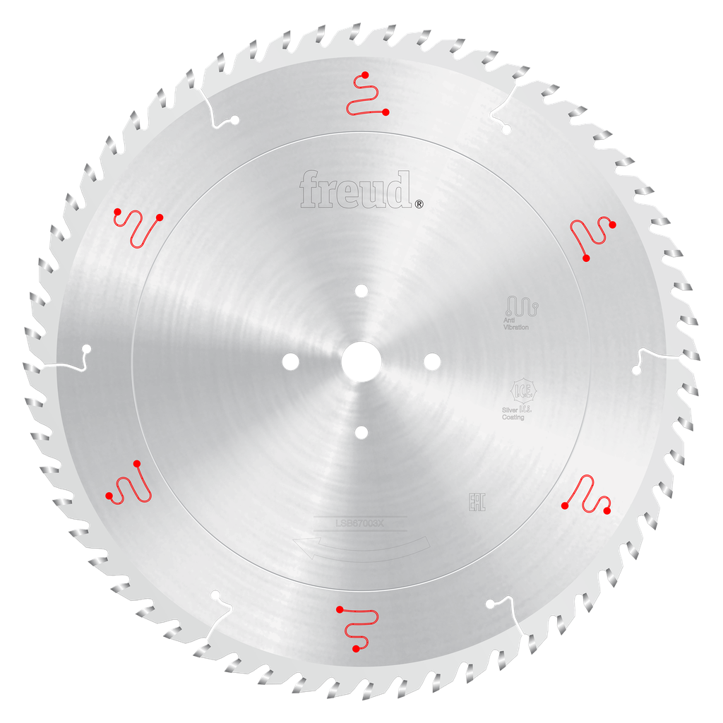 Engineered for exceptional performance in panel sizing applications, this 670mm blade features Freud’s exclusive TiCo™ Hi-Density Carbide, meticulously designed to enhance cutting life and deliver a superior material finish across a variety of substrates. Its advanced anti-vibration design minimizes disturbances during operation, which significantly contributes to improved accuracy and efficiency when handling materials like melamine, MDF, and veneer. The Silver I.C.E.® coating further enhances durability by reducing heat and drag, allowing for extended use without compromising quality. With 60 teeth configured in a triple-chip grind and a kerf of 6.2mm, this blade is ideal for precision cutting in both single and multiple panels, making it a staple for manufacturers aiming to optimize their workflow.