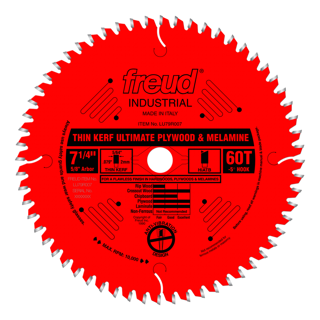 Freud 7-1/4″ x 60T Thin Kerf Ultimate Plywood & Melamine Blade #LU79R007