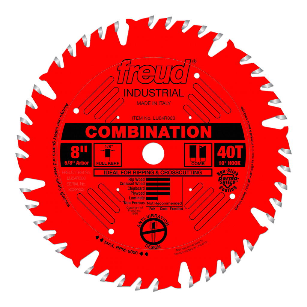 The 8″ Combination Blade from Freud Tools is engineered for versatility, excelling in a range of materials including hardwoods, softwoods, plywood, and laminate. Its premium TiCo™ HI-Density Carbide combination blend enhances performance, ensuring that users enjoy extended blade life and precise cuts. The blade features a Perma-Shield™ non-stick coating, which reduces drag while simultaneously protecting against corrosion and pitch build-up, promoting cleaner cuts and easier maintenance.