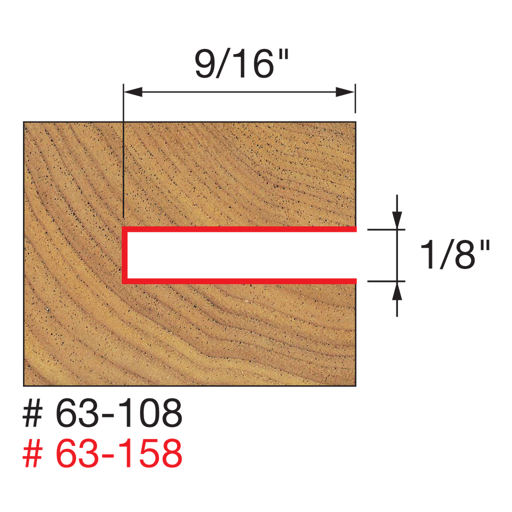 Slotting Cutter Sets come complete with an arbor, bearing and clean-cutting 3-wing cutter to quickly cut 9/16″-deep slots and grooves in hardwood, softwood, plywood and composites. Perfect for T-moldings, Spline Joints, Tongue & Groove Joints, and other applications. For use in hand-held and table-mounted routers.