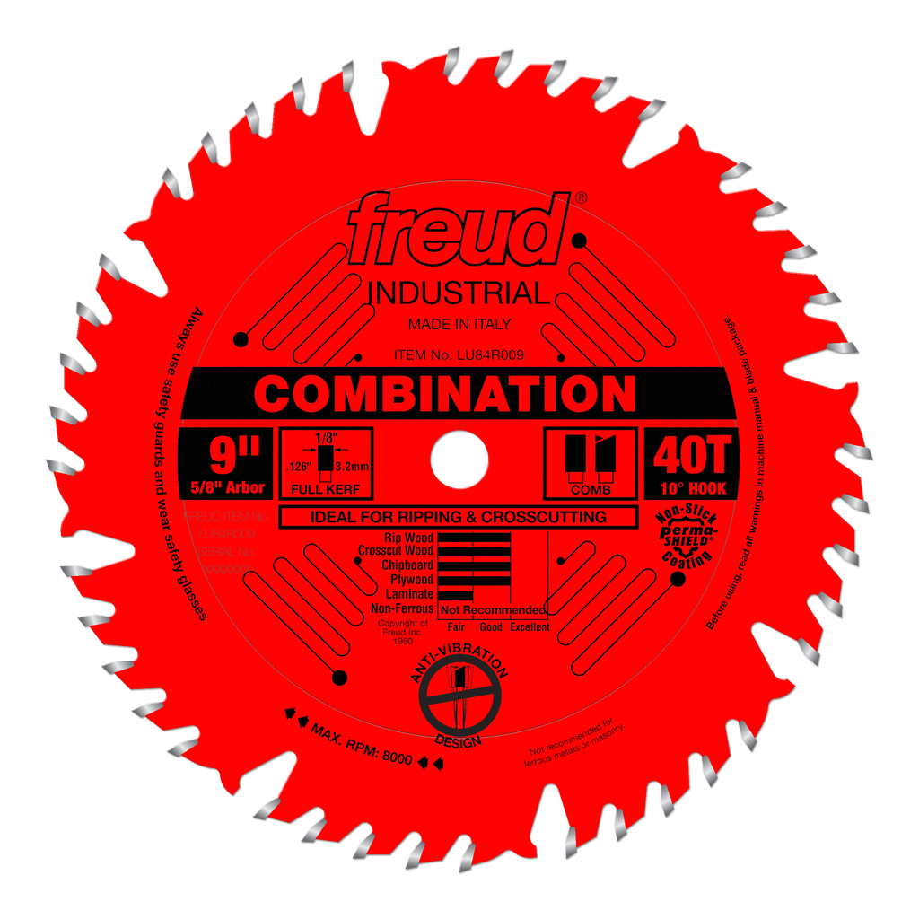This ultimate combination blade combines one flat tooth for ripping, followed by four alternate top bevel teeth for crosscutting and a large gullet for effective chip clearance. This blade also features laser cut anti-vibration slots, practically eliminating the vibration that resonates in standard blades. With this ultimate combination blade, there is no need for stabilizers.