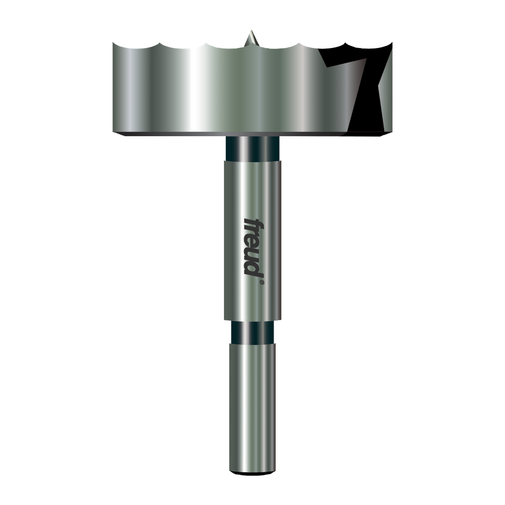 New Precision Shear™ Forstner Bits feature a double-ground, razor-sharp serrated edge that slices throughout the rotation of the bit for less splintering and chipping, producing flawless flat-bottom holes. This unique geometric design has multiple cutting edges that produce greater shearing action, allowing for faster rotational speeds and more efficient cutting. Competitive Forstner Bit designs produce small chips and dust that collect in the cutting area, increasing friction and heat, thus causing the bit to dull quickly. Those designs also create holes with rough edges that require sanding. In addition Precision Shear™ Forstner Bits has serrated edges.