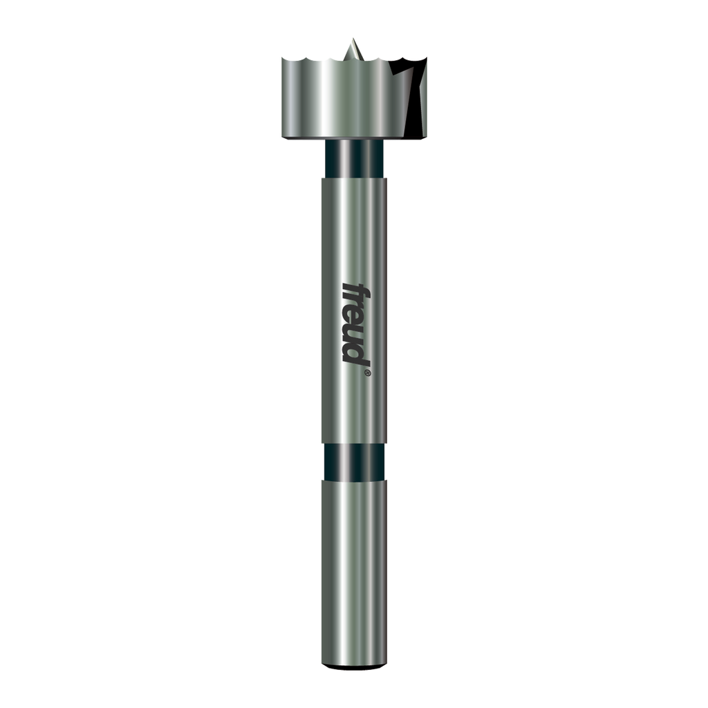 New Precision Shear™ Forstner Bits feature a double-ground, razor-sharp serrated edge that slices throughout the rotation of the bit for less splintering and chipping, producing flawless flat-bottom holes. This unique geometric design has multiple cutting edges that produce greater shearing action, allowing for faster rotational speeds and more efficient cutting. Competitive Forstner Bit designs produce small chips and dust that collect in the cutting area, increasing friction and heat, thus causing the bit to dull quickly. Those designs also create holes with rough edges that require sanding. In addition Precision Shear™ Forstner Bits has serrated edges.