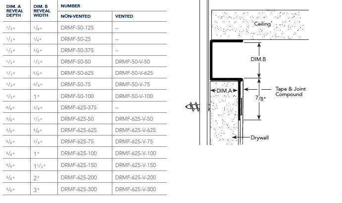 Fry Reglet DRMF-50-V-50 Drywall F Reveal Molding 1/2″ x 1/2″ VENTED Chem Film (Paintable) (10ft Stick)