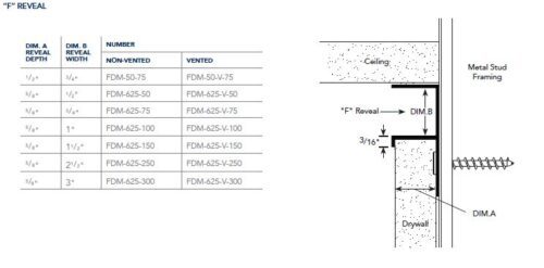 Fry Reglet FDM-625-V-300 Drywall F Reveal Trim 5/8″ x 3″ VENTED Powder Coat Painted (10ft Stick)