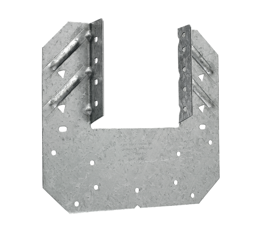 The H10A series holds the rafter or truss on both sides for higher uplift applications with embossments that add stiffness in crucial areas for improved performance. These U-shaped hurricane ties provide faster installation than using two single-sided ties. H10A models come with optional fastener holes to connect roof blocking to the top plate. Slots allow field bending up to a maximum pitch of 6:12 to accommodate angled blocking.