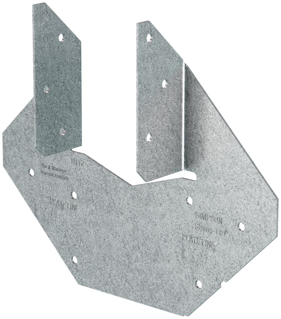 The H11Z holds a rafter or truss on both sides for higher lateral load resistance. The double-sided design provides faster installation than using two single-sided straps. The H11Z is specifically designed for 3x nominal lumber.