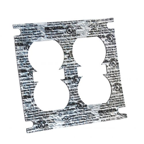 Metacaulk Cover Guard is a 1-piece fire-rated gasket for meeting the “24-in rule” in electrical boxes. When exposed to heat, intumescent material expands/forms a char to seal opening, prevent flame spread & limit heat transfer to unexposed areas.