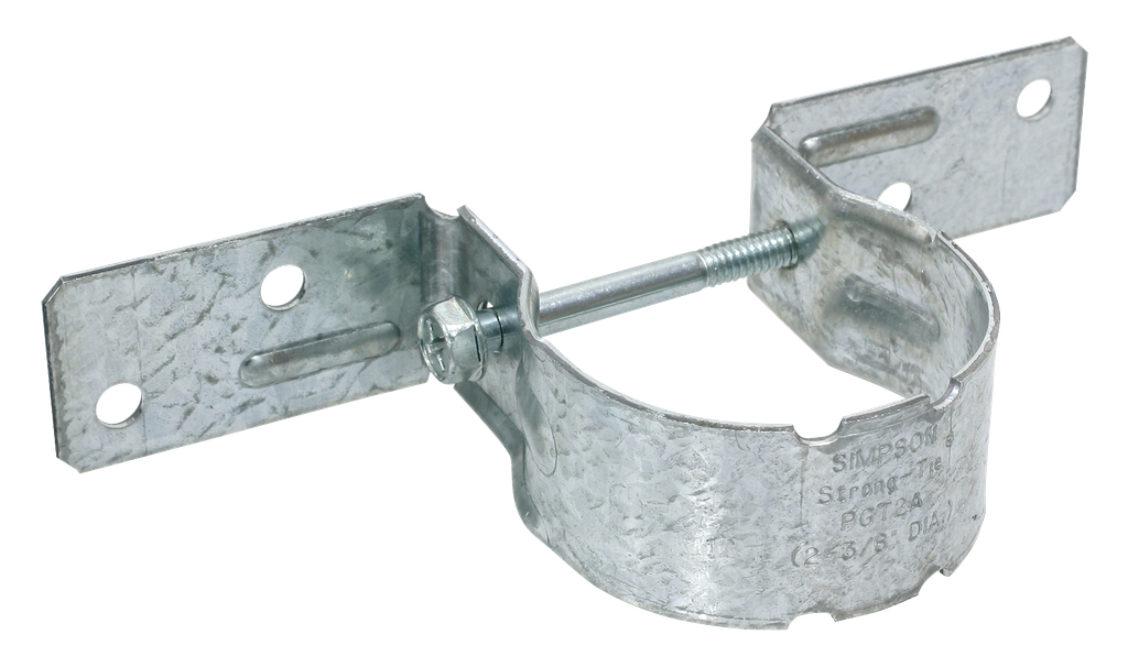Simpson Strong-Tie Pipe Grip Ties make it easy to attach wood fence rails to metal fence posts. Galvanized fence posts typically last longer than wood posts, extending the life of the fence by helping to avoid the common problem of rotting fence posts. Now you can get the look of a wood fence with the durability of steel posts. The PGT is suitable for standard applications as well as corners and splices.
