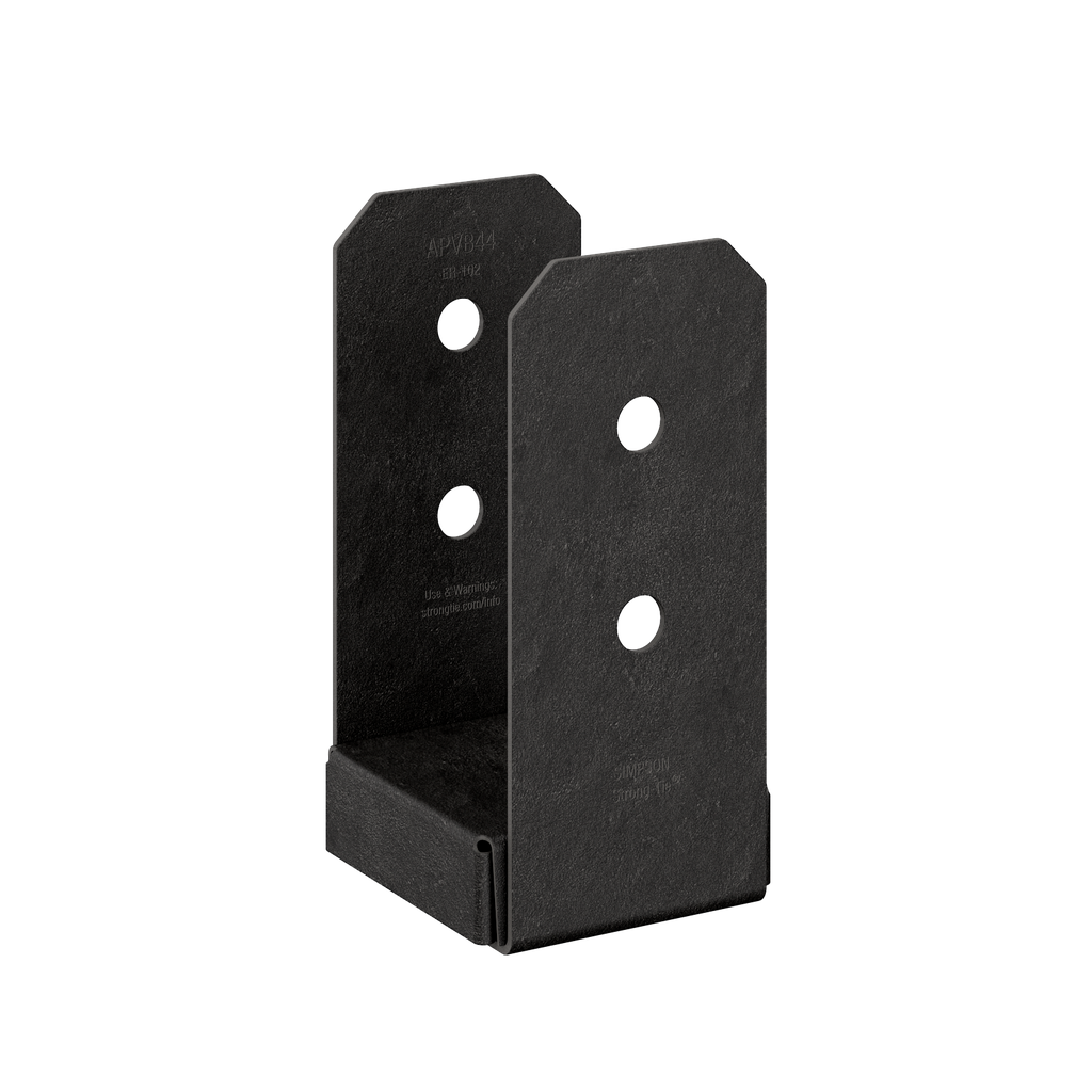 Outdoor Accents post bases secure the post or column to concrete and are perfect for outdoor projects, such as pergolas, patio covers and other top-supported structures. These post bases feature a clean, simple design and provide ZMAX galvanization with black powder-coat for extra corrosion resistance. The post base includes a 1-in. standoff from the concrete to help avoid post-end rot from moisture. Part of the Avant Collection.