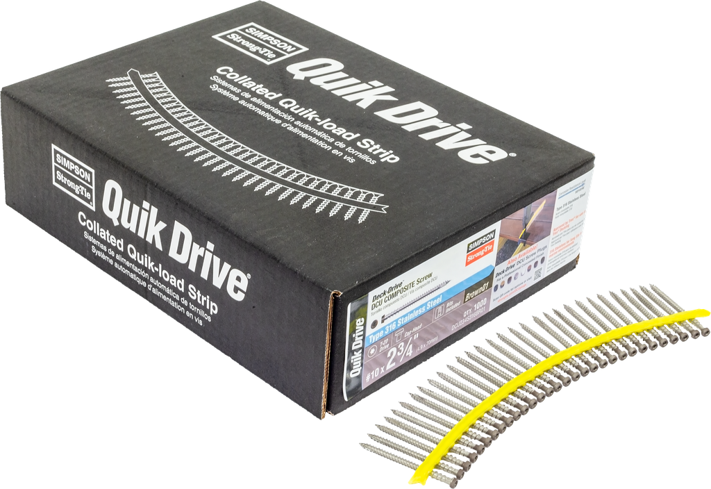 For composite or PVC decking. The Deck-Drive DCU Composite screw is engineered to provide beautiful fastening results for all types of composite decking while also offering greater ease of installation, a clean finish and superb corrosion resistance. The Deck-Drive DCU is the go-to-screw for all your composite decking applications, eliminating the need to mix and match screws to the decking they are suited for. Available with color-matching painted heads to blend with popular decking manufacturers and to provide a more concealed finish.