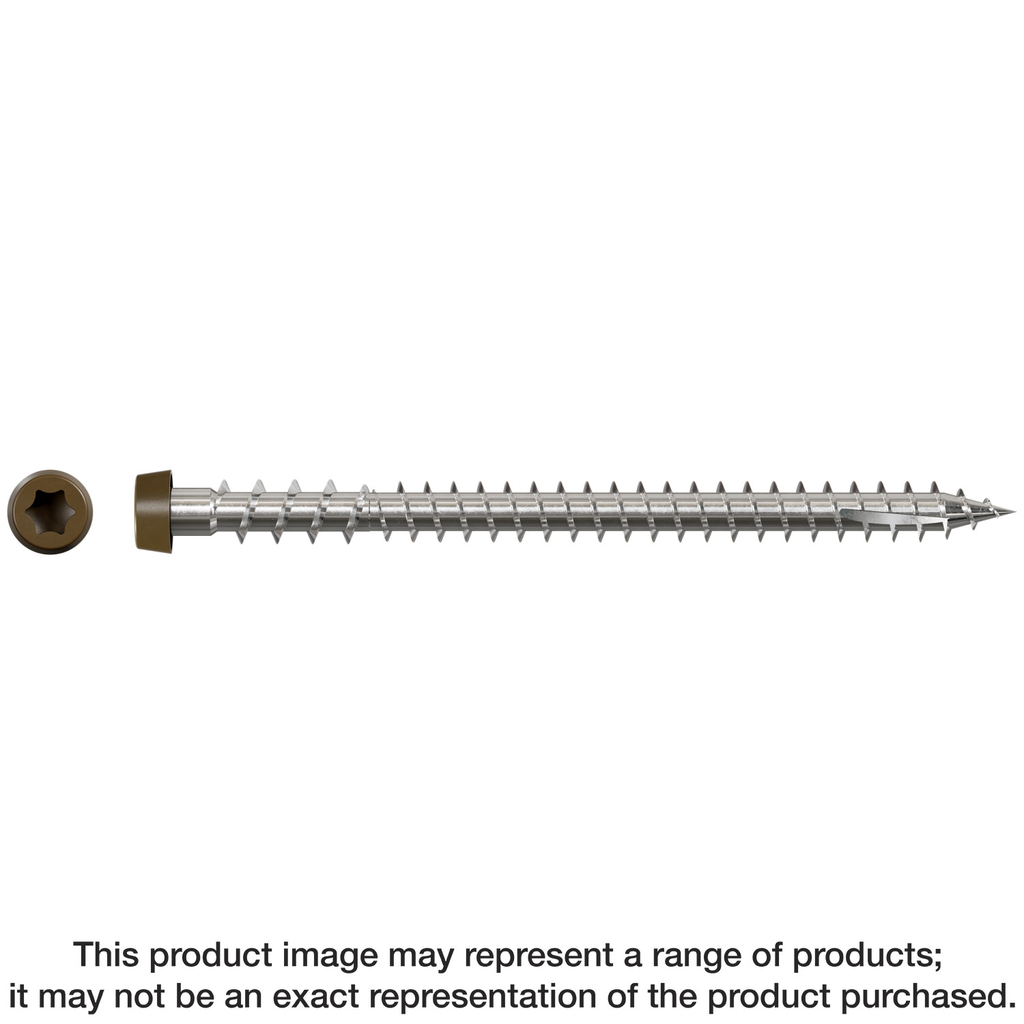 Engineered for optimal performance, the Simpson Strong-Tie DCU234S316BR01Deck-Drive™ DCU COMPOSITE Screw is a dependable choice for your decking projects. Designed with an innovative tri-lobe thread, these screws minimize damage to composite boards during installation, while the Type-17 point ensures a smooth penetration for faster starts. Made from Type 316 stainless steel, they offer outstanding corrosion resistance, making them ideal for outdoor applications. The brown cap head also prevents material from rising above the deck surface, resulting in a clean and professional finish. Whether you’re working with Trex® composite decking or other materials, these collated screws are designed to provide both strength and aesthetic appeal to your outdoor projects.