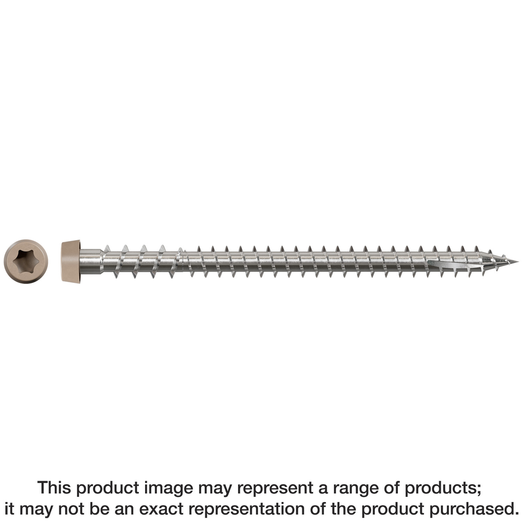 Designed for exceptional durability and performance, these collated deck screws from Simpson Strong-Tie are crafted from Type 316 stainless steel, offering severe-level corrosion resistance ideal for outdoor applications. Specifically approved for use with Trex composite decking, the screws feature a tri-lobe thread design that minimizes damage to the composite material and ensures smooth driving. Their Type-17 point allows for effortless penetration, promoting quick and efficient installation. The gray head color complements the aesthetics of composite surfaces while the cap head design prevents mushrooming, providing a clean finish. Whether you’re a DIY enthusiast or a professional contractor, these fasteners will deliver reliable results in your decking projects.