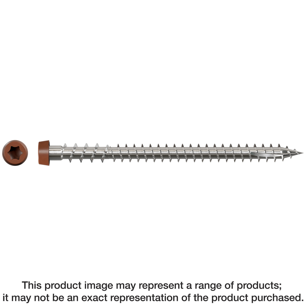 For composite or PVC decking. The Deck-Drive DCU Composite screw is engineered to provide beautiful fastening results for all types of composite decking while also offering greater ease of installation, a clean finish and superb corrosion resistance. The Deck-Drive DCU is the go-to-screw for all your composite decking applications, eliminating the need to mix and match screws to the decking they are suited for. Available with color-matching painted heads to blend with popular decking manufacturers and to provide a more concealed finish.