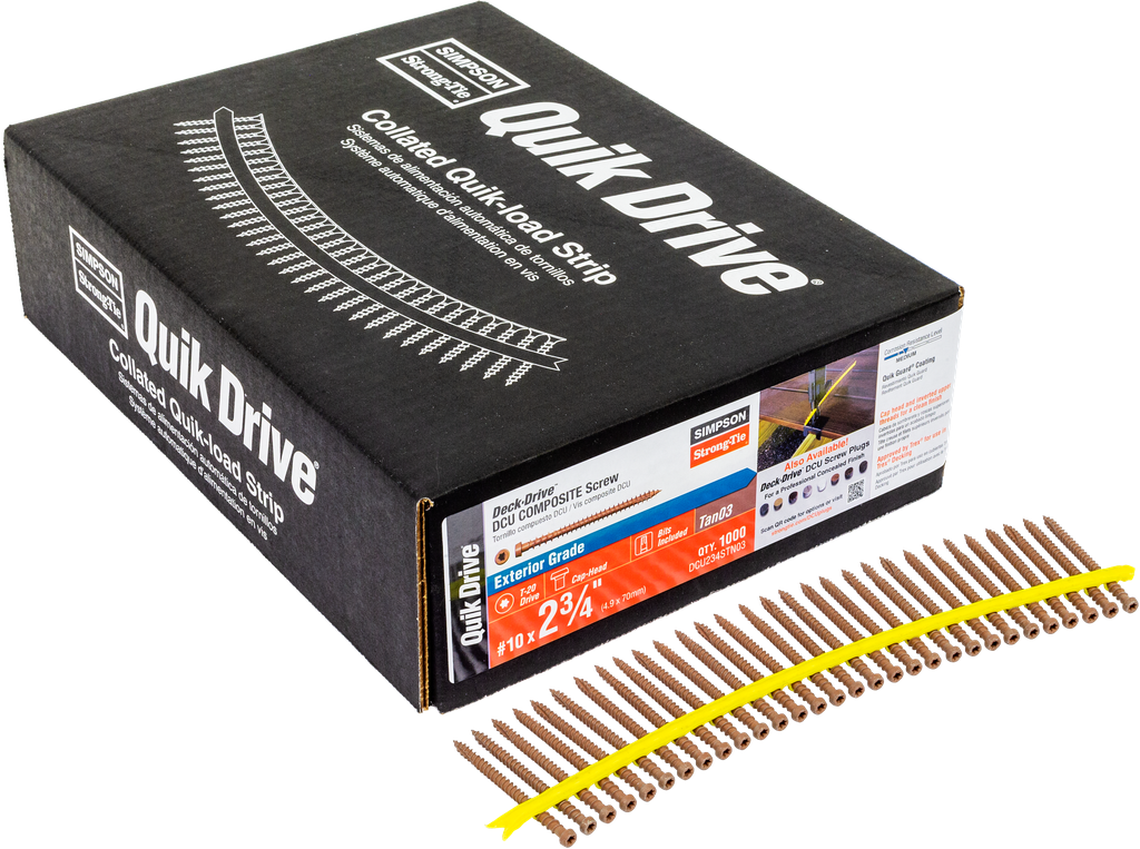 Engineered specifically for the demands of composite decking, the Simpson Strong-Tie DCU Composite Screw provides an ideal fastening solution. These collated screws feature a unique Tri-lobe thread design that minimizes damage to the boards while ensuring a secure hold. An approved fastener for Trex composite decking, they offer exceptional performance with their Type-17 point that allows for easy penetration and quicker installation.