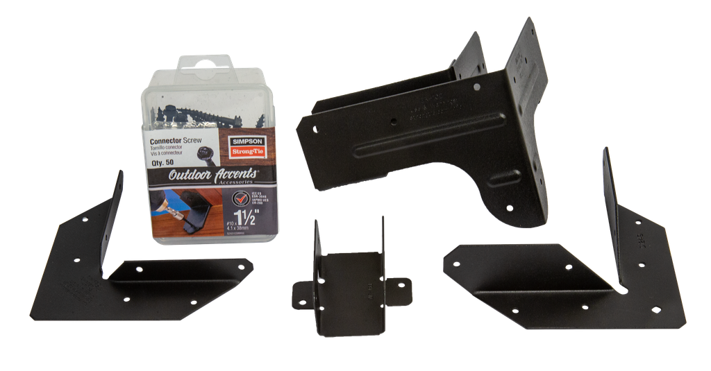 The Outdoor Accents connector screw reduces installation time by driving easily without predrilling. Designed for installation with the Outdoor Accents connectors, such as the APA21 90° angle, APLH light joist hangers and APGT gazebo ties, the screw’s black finish accents any outdoor living project. The sharp point of the screw enables fast starts.