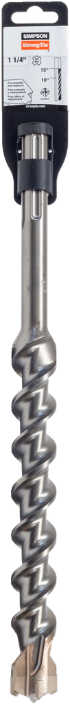 Engineered for rigorous use in construction and renovation projects, the 1-1/4 in. x 15 in. SDS-max® Shank Quad-Head Drill Bit from Simpson Strong-Tie stands out with a durable design that enhances drilling efficiency. Its heat-treated construction and shot-peened finish not only boost surface hardness but also enhance drilling speed while minimizing wear, ensuring that your tool maintains peak performance over time. The innovative quad head geometry, featuring four cutting edges at 90° angles, effectively crushes through rebar and prevents sticking, making it an essential choice for working with reinforced concrete.