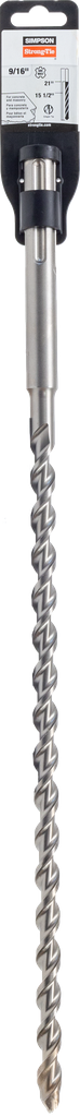 Engineered for high performance in demanding environments, the SDS-max® shank drill bit from Simpson Strong-Tie is a robust tool designed to tackle reinforced concrete with ease. The innovative 2-cutter head features a 4 x 90° geometry that effectively crushes rebar while minimizing the risk of sticking during drilling. With a drilling depth of 15-1/2 inches and a diameter of 9/16 inch, this bit excels in efficiency, thanks to its high-volume, multi-flute spiral that swiftly removes debris, thus improving drilling speed.