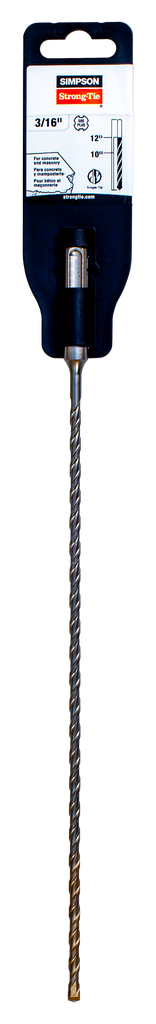 Engineered for efficiency and longevity, the 1/4 in. x 12 in. SDS-plus® Shank Solid-Tip Carbide Drill Bit from Simpson Strong-Tie is a vital tool for anyone tackling concrete drilling tasks. Its chisel-shaped head is designed specifically to penetrate materials effectively while directing debris into the high-volume, multi-flute spiral. This enhances drilling speed and ensures a cleaner, faster process. Constructed from a robust chromium-nickel-molybdenum steel alloy, the bit is optimized for hammering quality and extended service life, making it a reliable choice for demanding applications. With uniformly brazed carbide inserts and advanced heat-treatment procedures, this drill bit not only boosts surface hardness but also improves resistance to bending forces, ensuring it withstands rigorous use. Adhering to ANSI Standard B212.15, this drill bit stands out as a high-performance solution for professional contractors and serious DIY enthusiasts alike.