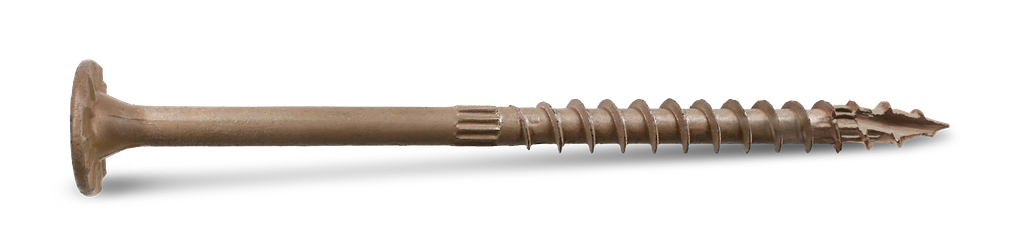 The Simpson Strong-Drive® SDWS™ Timber Screw is engineered for superior performance in wood applications, boasting a bold thread design that enhances holding power. With its large, low-profile washer head measuring 0.760 inches in diameter, this screw provides an extensive bearing area, improving stability and strength. Featuring a SawTooth® point, it ensures quick starts and minimizes installation torque, effectively eliminating the need for predrilling in most cases. The innovative design also includes underhead nibs that allow the head to drive flush to the surface, reducing splintering during installation. Designed for the rigorous demands of outdoor projects, this tan-finished screw is ideal for construction tasks where durability and efficiency are paramount.