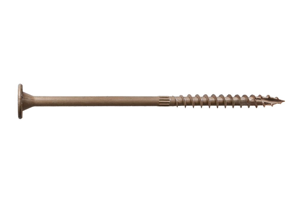 Engineered for exceptional performance, the Simpson Strong-Drive® SDWS™ Timber Screw stands out with its bold thread design, delivering superior holding power ideal for a variety of exterior applications. Each screw features a SawTooth® point that ensures quick starts while minimizing installation torque, eliminating the need for predrilling in most cases. The large, low-profile washer head not only provides maximum bearing area for stability but also promotes a flush finish with reduced splintering, making it an excellent choice for clean and polished constructions. Designed with convenience in mind, the 6-lobe T40 drive enhances engagement and makes driving easier, prolonging the life of your bit. With a color-matched tan finish, these screws seamlessly blend with wooden surfaces, ensuring both functionality and aesthetic appeal in your projects.
