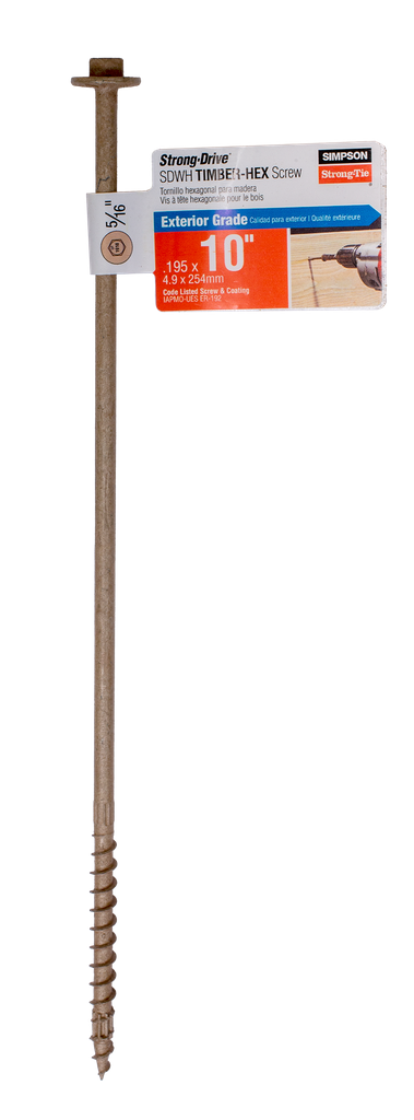 Ideal for structural and general-purpose fastening applications where a hex-head drive is preferred. The Strong-Drive SDWH Timber-Hex screw is ideal for the contractor and do-it-yourselfer alike. It is code listed under IAPMO-UES ER-192 and meets 2015 and 2018 IRC® and IBC® code requirements for several common wood framing applications.
