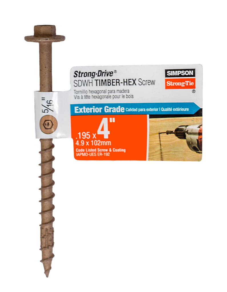 Engineered for strength and reliability, the Strong-Drive® SDWH™ timber-hex screw from Simpson Strong-Tie features a large 0.650-inch washer head, ensuring maximum bearing area for secure fastening. Its innovative SawTooth® point design allows for quick starts and minimizes installation torque, eliminating the need for predrilling in most applications, which can significantly speed up your project timeline. The double-barrier coating provides excellent corrosion resistance comparable to hot-dip galvanization, making these screws suitable for a variety of non-marine environments. With a 5/16-inch hex drive and bold thread design, this screw offers superior holding power, while under-head nibs enhance control during installation, ensuring that the head seats perfectly every time.