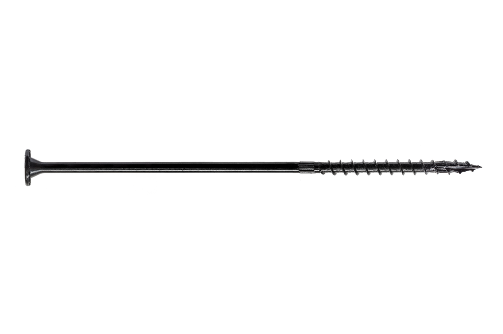 Engineered for efficient performance, the Strong-Drive® SDWS™ timber screw from Simpson Strong-Tie is a superior choice for a variety of interior applications. With a unique SawTooth® point, this screw allows for quick starts and minimizes installation torque, eliminating the need for predrilling in most cases. The large washer head, coupled with a low-profile design, enhances its bearing area and makes countersinking a simple task, while the serrated threads help reduce splitting and damage to the wood. Coated with E-coat® for added protection in dry, low-corrosion environments, and featuring a T40, 6-lobe drive for excellent engagement, this screw is designed to provide reliable and effective fastening. Each package contains 50 screws and includes size identification to streamline your project needs.