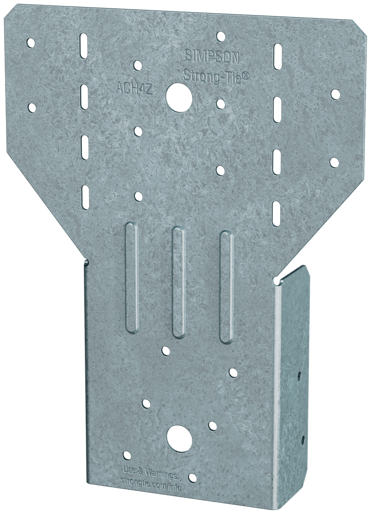 The Simpson Strong-Tie® ACHZ™ is a heavier-capacity post cap, designed to provide a secure connection between a beam and a post. A two-piece design, it’s ideal for new or retrofit applications where structural support is needed. It provides medium- to high-capacity uplift loads and allows for either mid-beam or end-beam connections when flanges are field bent.