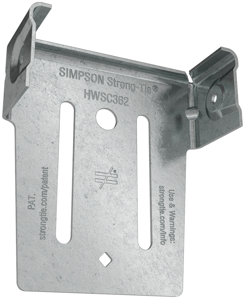 The Simpson Strong-Tie® HWSC™ head-of-wall slide-clip connector is designed for simplifying the panelization of printed studs (e.g., FrameCAD, Arkitech, Howick and Pinnacle). The HWSC is designed to replace slotted track with a typical printed track at head-of-wall conditions. To facilitate installation, a cone-shaped funnel in the clip helps the dimple in the track align properly with the clip’s corresponding dimple to hold it in place while a screw is placed in each flange from the track to the clip. The stud is then slid into position, and the clip is attached to the stud with shoulder screws driven through the center of the fastener slots. As an option, fasten the clip to the stud hole using a single screw to lock the deflection gap in place temporarily during transport and installation. The optional screw is then removed after installation is complete. The HWSC has been assembly-tested to provide optimal strength and performance.