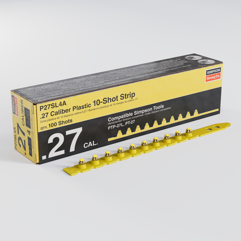 Simpson Strong-Tie offers a full range of direct fastening systems designed to provide rugged reliability while keeping the job moving as fast as possible. They are also tested in the field to meet the most demanding needs of the professional. Our complete line of fasteners is extensively tested to ensure quality and performance. P27SL 0.27-caliber single-shot loads are compatible with all Simpson Strong-Tie® 0.27-caliber tools and other common 0.27-caliber tools. Available in levels 2–6.