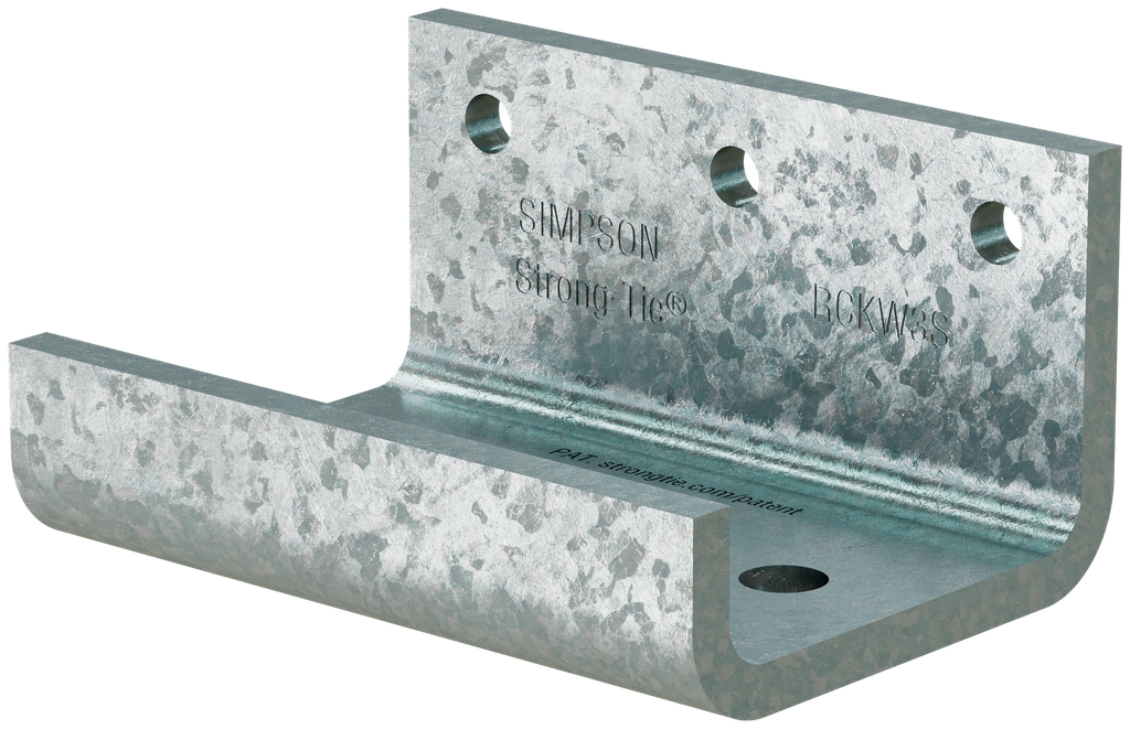 The Simpson Strong-Tie® RCKW™ is a heavy 171 mil (7 ga.) rigid connector that has been developed to resist overturning moment at the base of exterior kneewalls and parapets as well as interior partial-height walls or overhead ribbon window conditions. These connectors offer a unique small and large anchor-hole pattern that permits anchorage to both concrete and structural steel. If load requires more capacity, a stiffener, the RCKWS can be added. The RCKWS is a heavy 171 mil (7 ga.) stiffener that nests onto the RCKW clip. The screw holes and anchor holes in the stiffener line up with those in the RCKW clip, making fastener and anchor installation a snap. The RCKW clip and RCKWS stiffener are sold separately.