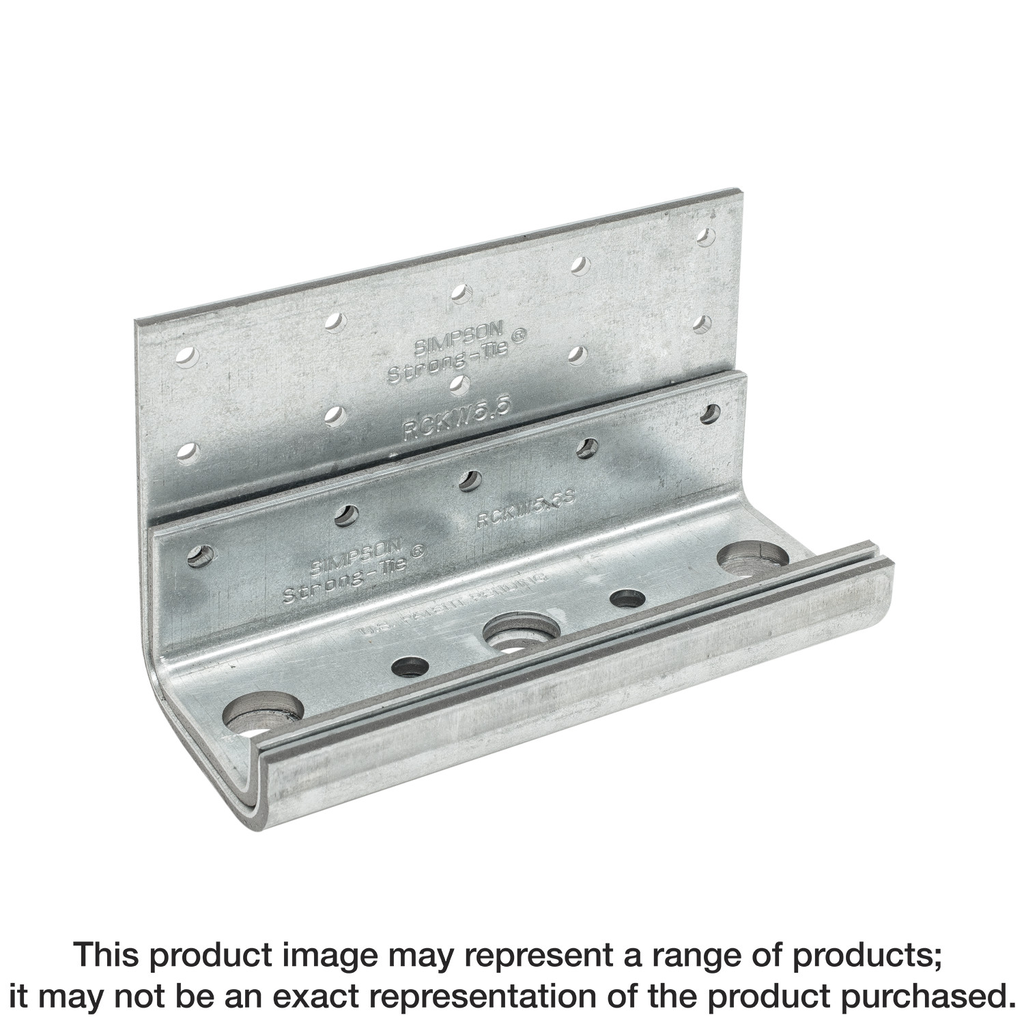 The Simpson Strong-Tie® RCKW is a heavy 171 mil (7 ga.) rigid connector that has been developed to resist overturning moment at the base of exterior kneewalls and parapets as well as interior partial-height walls or overhead ribbon window conditions. These connectors offer a unique small and large anchor-hole pattern that permits anchorage to both concrete and structural steel. If load requires more capacity, a stiffener, the RCKWS can be added. The RCKWS is a heavy 171 mil (7 ga.) stiffener that nests onto the RCKW clip. The screw holes and anchor holes in the stiffener line up with those in the RCKW clip, making fastener and anchor installation a snap. The RCKW clip and RCKWS stiffener are sold separately.