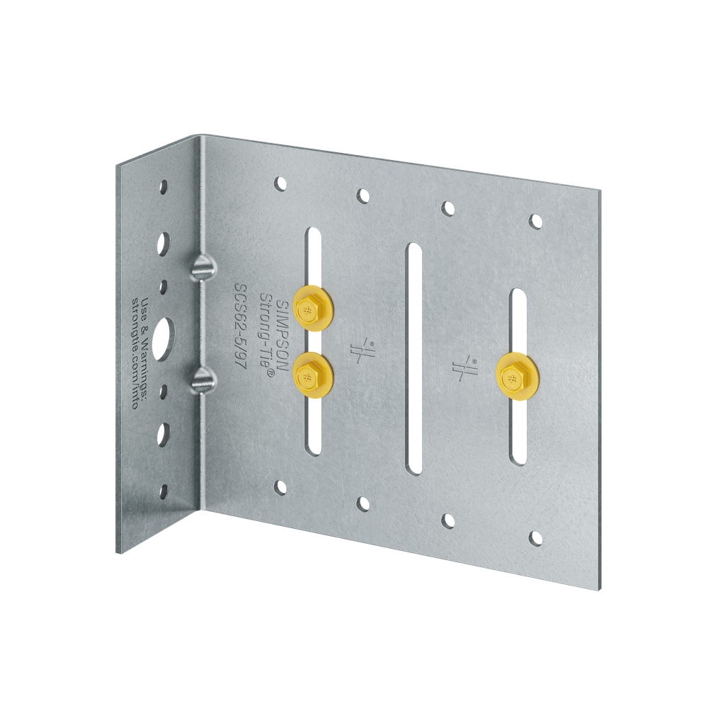The Simpson Strong-Tie® SCS is a hybrid clip designed specifically to allow both slide-clip or fixed-clip applications in areas of high seismic activity. Everything about the SCS clip — from its heavy-duty steel manufacturing to its strategically placed darts to the location of its fastener slots and holes — has been engineered to provide exceptional resistance to in-plane seismic loads. Backed by our real-world, full-scale cyclic testing, the SCS seismic clip delivers the highest seismic loads in the industry. Slide-clip testing shows that attachment at the first slot is most critical to in-plane capacity, the SCS is designed to accommodate two large washer screws (included) at the first slot attached to the stud. The hole types and locations maximize the SCS clip’s versatility, with three prepunched oblong slots for slide-clip applications and a pattern of round holes allowing fixed-clip options to meet a range of load needs.