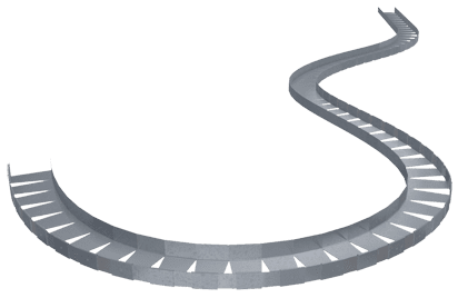 CircleTrak® provides a superior solution for those situations requiring the construction of a curved wall or arched ceiling. Its unique design not only allows for a variety of different radius shapes but also provides for the ability to form curves by hand. A flat strap in one leg maintains the curved shape of the wall until permanent installation is completed. No additional specialized tools are required to install CircleTrak (aside from standard screws and a drill), and track curvature can easily be re-set if necessary.