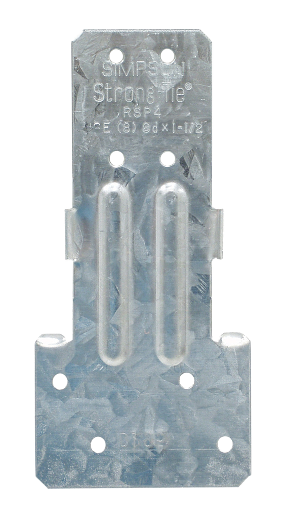 The RSP is designed to create a continuous load path to resist uplift. This versatile stud-plate tie is reversible and is able to connect a wood stud to either a double top plate or a sill plate of a wood-framed wall. The RSP features locating tabs that aid in attaching the tie to the plates to ensure proper placement during installation.