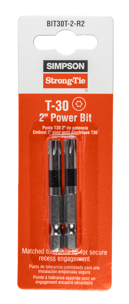 These power bits from Simpson Strong-Tie are designed specifically for versatility and efficiency in various fastening applications. The T30 6-lobe drive configuration not only minimizes cam-outs during use but also enhances grip for a secure fit, making them ideal for both professional and DIY projects. Each bit is conveniently color-coded with a black band, allowing for quick identification of the drive type and size at a glance. Available in a pack of two, these bits are engineered to offer reliability and performance, ensuring they meet the diverse needs of your projects with ease.