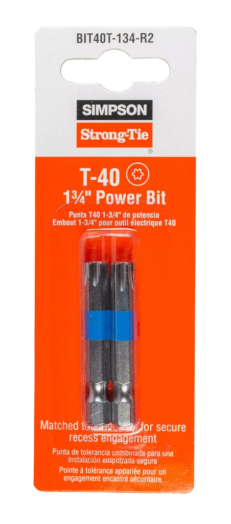 Engineered for precision and ease of use, the T40 6-lobe drive power bit from Simpson Strong-Tie features a thoughtfully designed blue band that allows for quick identification of the drive type and size. Measuring 1-3/4 inches in length, this power bit is crafted to minimize cam-outs, ensuring a more secure connection during fastening tasks. Offered in a variety of sizes and driver bit types, this versatile tool is an essential for any toolbox, making your projects smoother and more efficient.