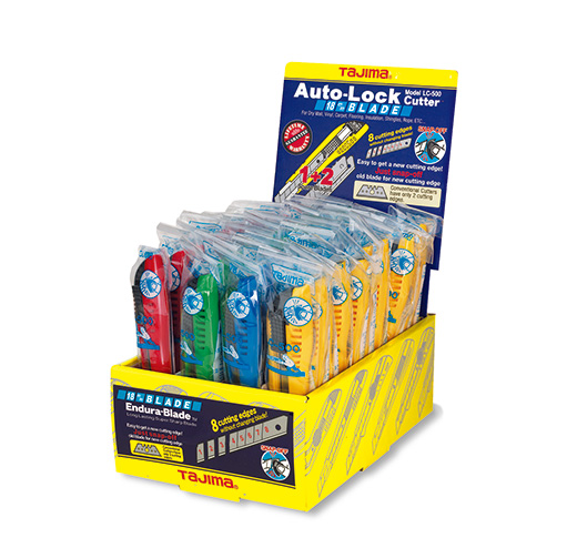 Crafted by TAJIMA TOOL, this set of heavy-duty cutter knives features a dial blade lock system for enhanced safety and precision during use. The collection includes 40 pieces in a vibrant four-color display, making it not only functional but visually appealing as well. Each knife is equipped with a robust 0.7-inch (18 mm) blade, ensuring reliability for various cutting tasks. Additionally, the innovative in-handle blade storage keeps your workspace organized while providing easy access to the three included Endura-Blades, highlighting the blend of practicality and design in a tool that is ideal for both professional and hobbyist use.