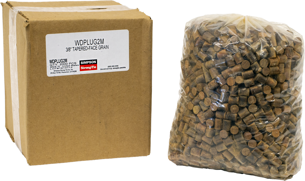 The WDPLUG2M wood plug from Simpson Strong-Tie is designed to seamlessly blend into existing ipê deck materials, offering an aesthetically pleasing solution for concealing deck screws. With a length of 7/16 inches and a head diameter of 3/8 inches, these wood plugs provide a smooth and sleek finish that enhances the overall look of your deck. This bulk pack of 2000 ensures you have plenty on hand for any project, allowing for a refined appearance that keeps the focus on the beauty of your decking.